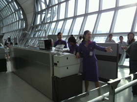 バンコクの国際空港を出発します。ここのスワンナプーム空港はとても広くて綺麗です。グッバイ、タイ。