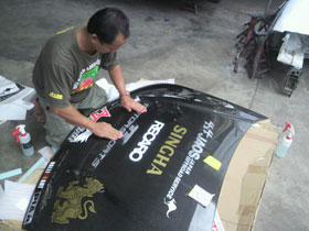 ステッカーをタイのメカに貼ってもらっています。少し違うところもありますが、予想です!
