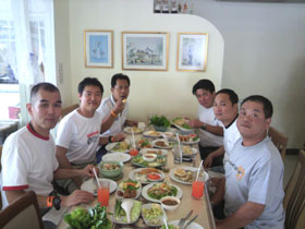お昼はタイの友達と食べました。ラリーカーはかなり目立ちますが、途中で少し観光もしました。