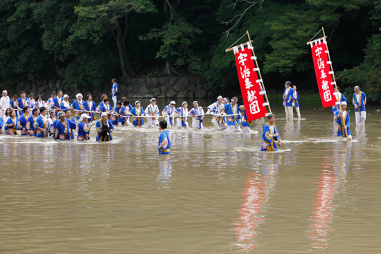 引いたり停まったりを繰り返し、深いところでは腰まで水に浸かりながらゆっくりと内宮に向かう